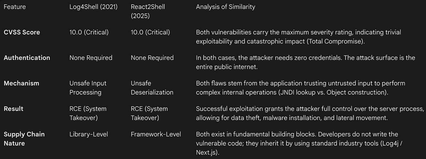 2. Comparative Analysis: React2Shell vs. Log4Shell